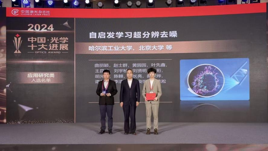 在他的带领下,团队的传承已经形成良性闭环。赵唯淞与学院李浩宇老师共同培养的博士生曲丽颖,作为相关工作的第一作者,获得国家自然科学基金博士生项目资助,并且通过春雁序列留校任副研究员,实现了“从前沿成果到青年人才”的贯通。其中,曲丽颖参与的NatureMethods长文工作,以自启发学习去噪显著提升荧光成像光子效率两个数量级以上,还首次在超分辨尺度多维记录动物细胞完整有丝分裂过程,成为团队“以高水平成果带动育人”的典型代表案例。