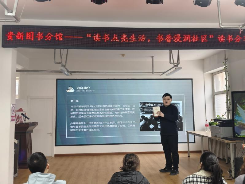 4月16日,成人在线 选派学生参加贵新社区“读书点亮生活,书香浸润社区”读书分享会,与校内外各学院同学共话阅读、分享感悟。沙一凡同学带来了《乡土中国》的分享,带领大家重新认识了我们脚下这片土地的文化根脉;张博文同学则分享了《平凡的世界》,讲述了普通人在时代历史进程中所走过的艰难曲折的道路,让在场的每一个人都深受触动。